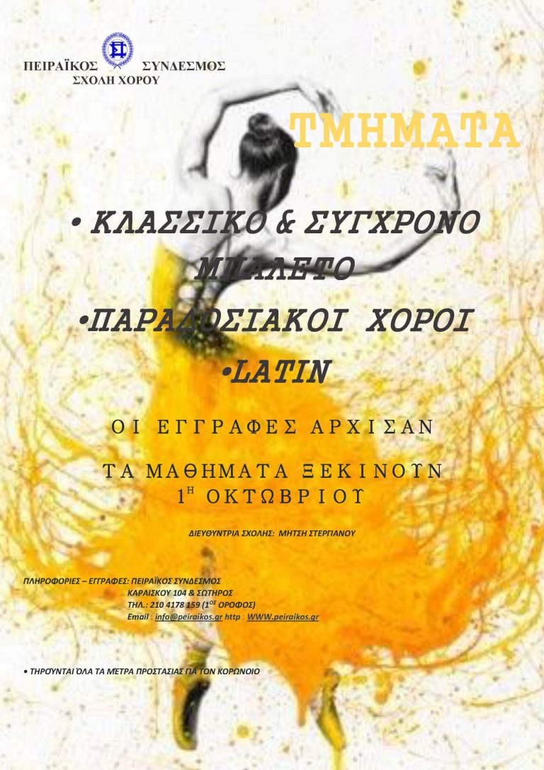 ΤΑ ΜΑΘΗΜΑΤΑ ΧΟΡΟΥ ΞΕΚΙΝΟΥΝ 1 ΟΚΤΩΒΡΙΟΥ 2020