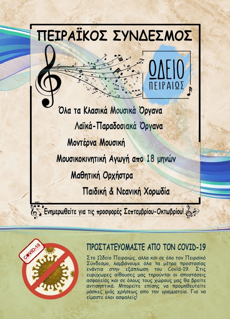 Τα μαθήματα των Σχολών των Καλλιτεχνικών Σπουδών ξεκινάνε την Δευτέρα 14 Σεπτεμβρίου 2020 !!! Τηρώντας τα μέτρα προστασίας και τους κανόνες λειτουργίας προς περιορισμό της